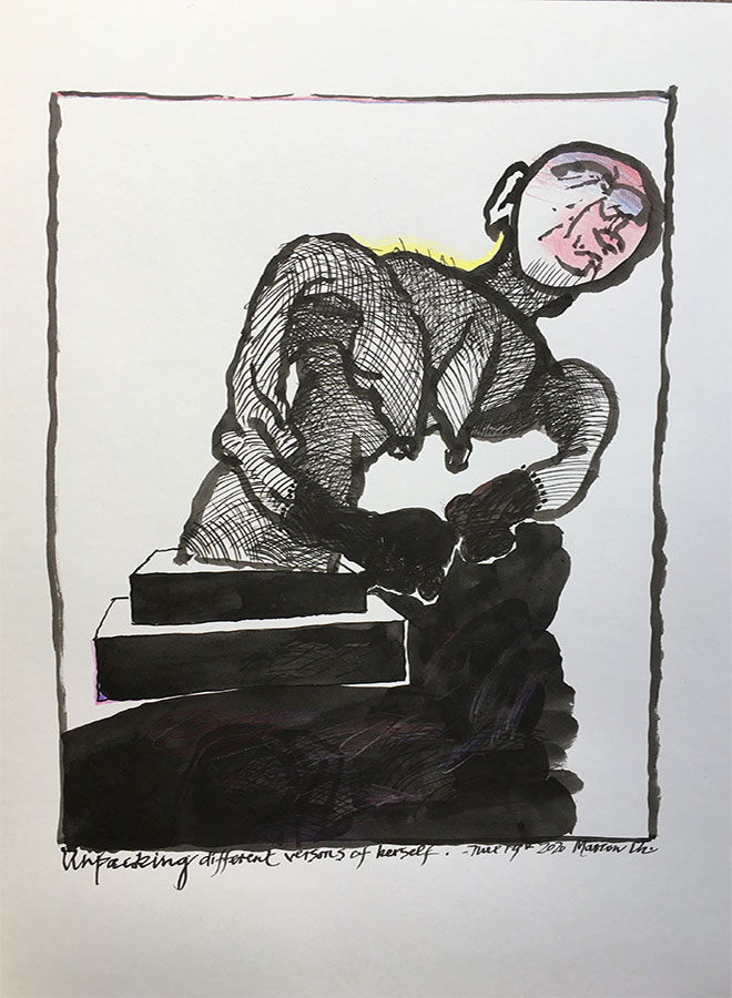 I say the drawings draw themselves. I am only touching or drawing on what is already there. The activity comes from physical, emotional and imaginative energy. When the moment is ripe, then the drawing manifests its cunning, its life.